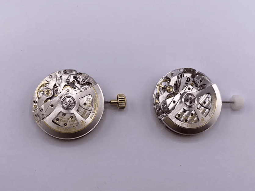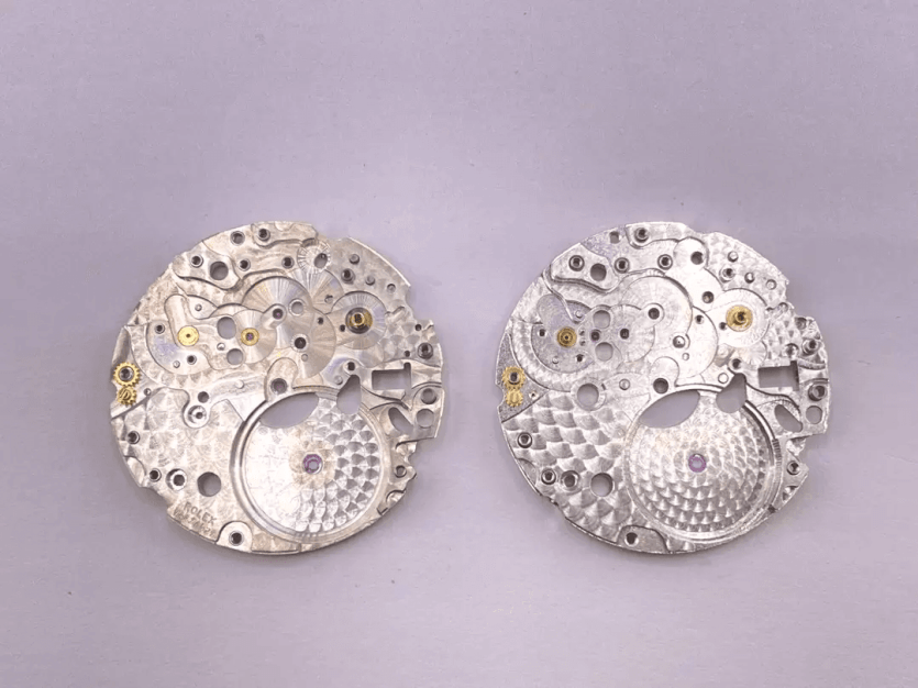 파워리저브 75시간연삭/전기도금/조각/조립은 클린공장에서 독립적으로 완료됩니다. 이전 4130무브에서 사용이 안됬던 크로노 기능 및 와인딩 느낌, 로터 소음이 해결 됬습니다.왼쪽 정품 / 오른쪽 클린공장 4131 무브먼트