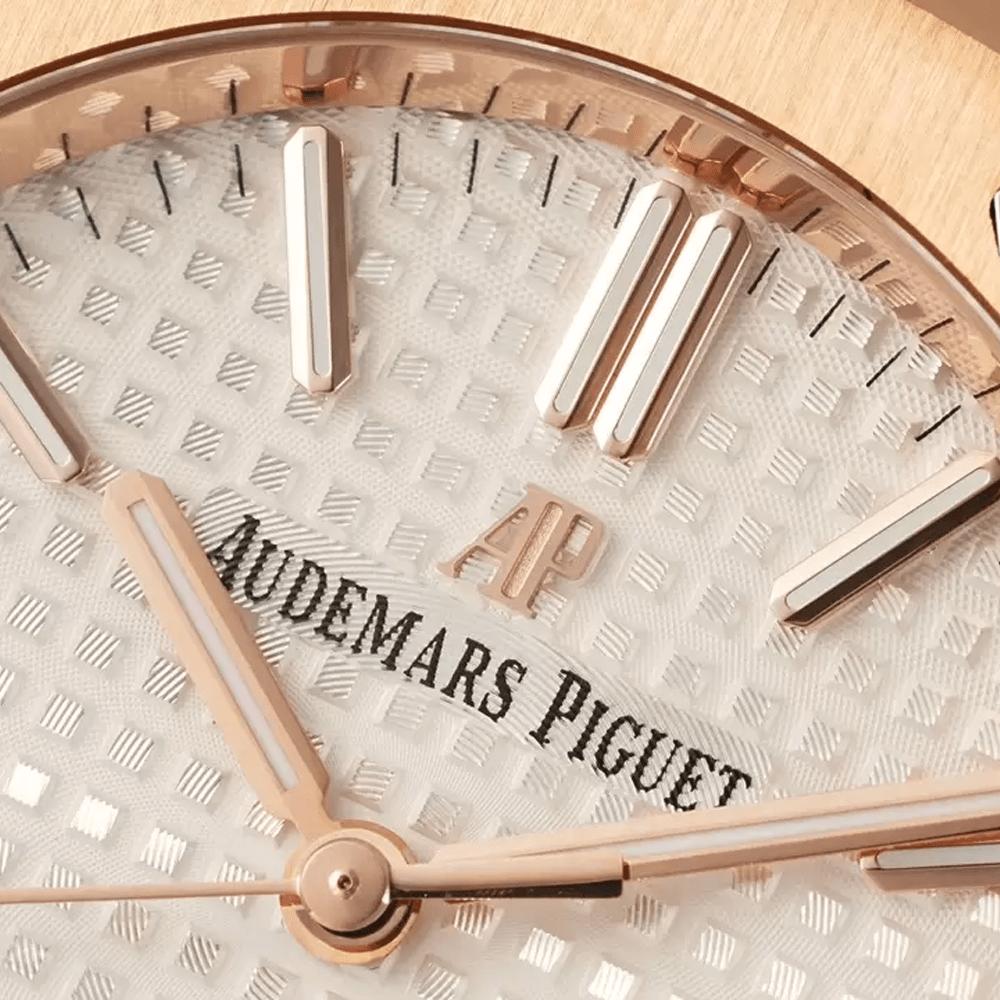 오데마피게 로얄오크 화이트 텍스처 다이얼 로즈골드 금통 37mm 15450