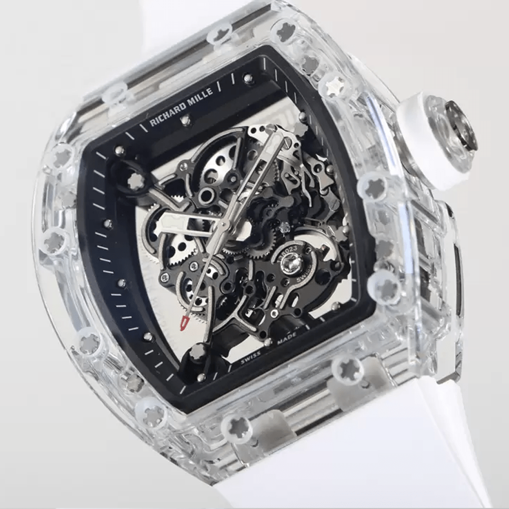 리차드밀 부바왓슨 크리스탈 스켈레톤 다이얼 화이트 러버 스트랩 RM-055