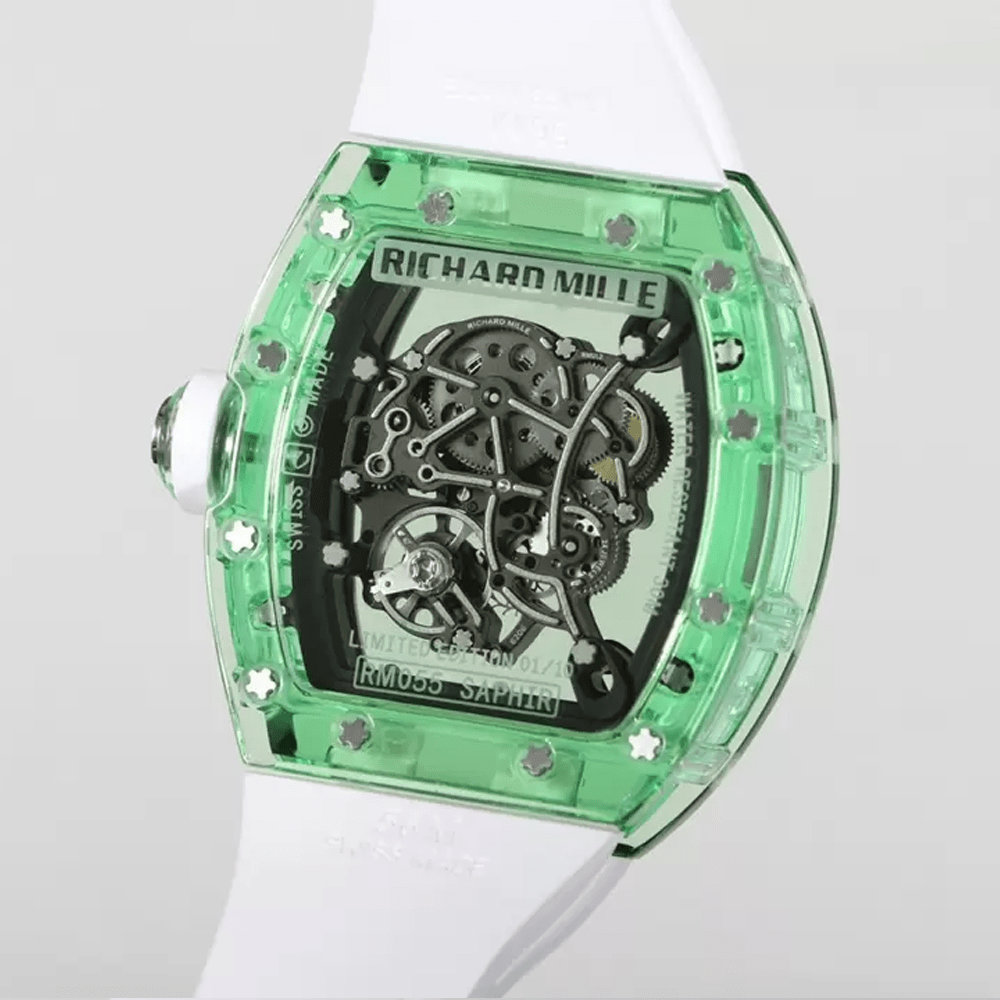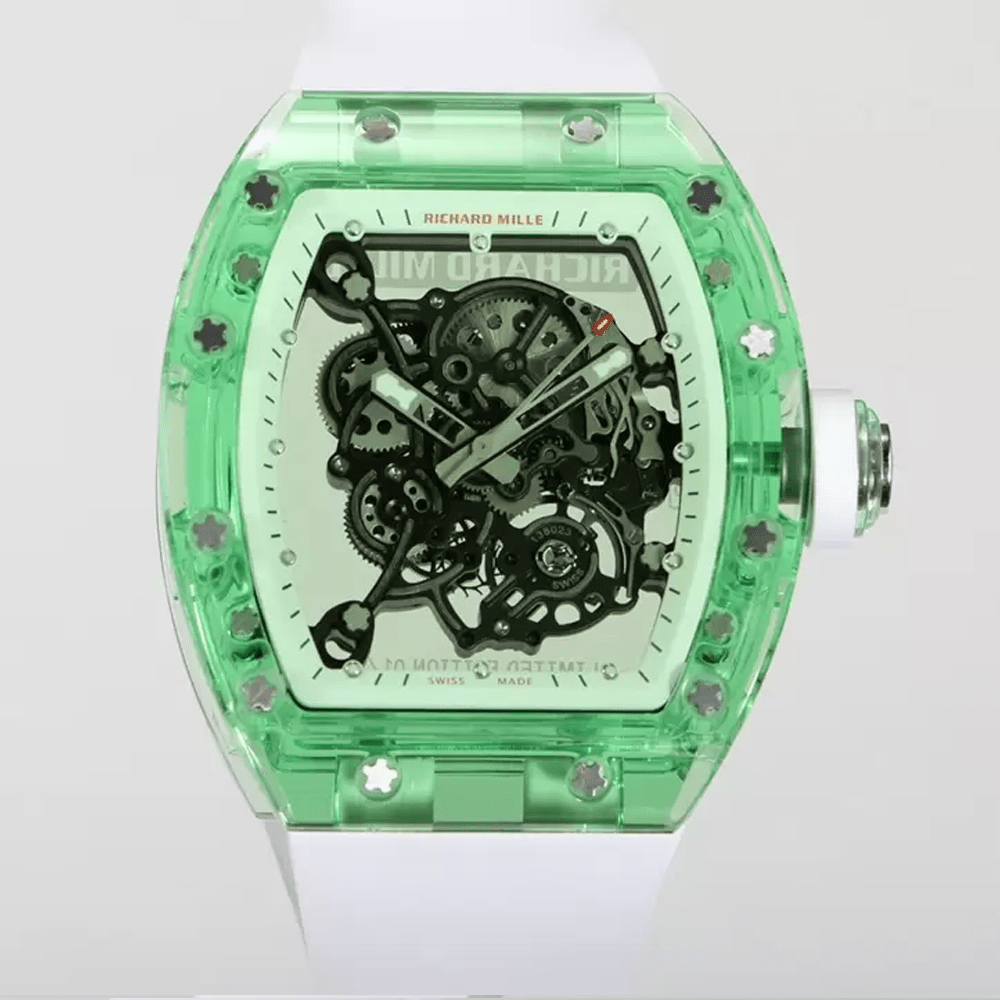 리차드밀 부바왓슨 그린 크리스탈 스켈레톤 다이얼 화이트 러버 스트랩 RM-055
