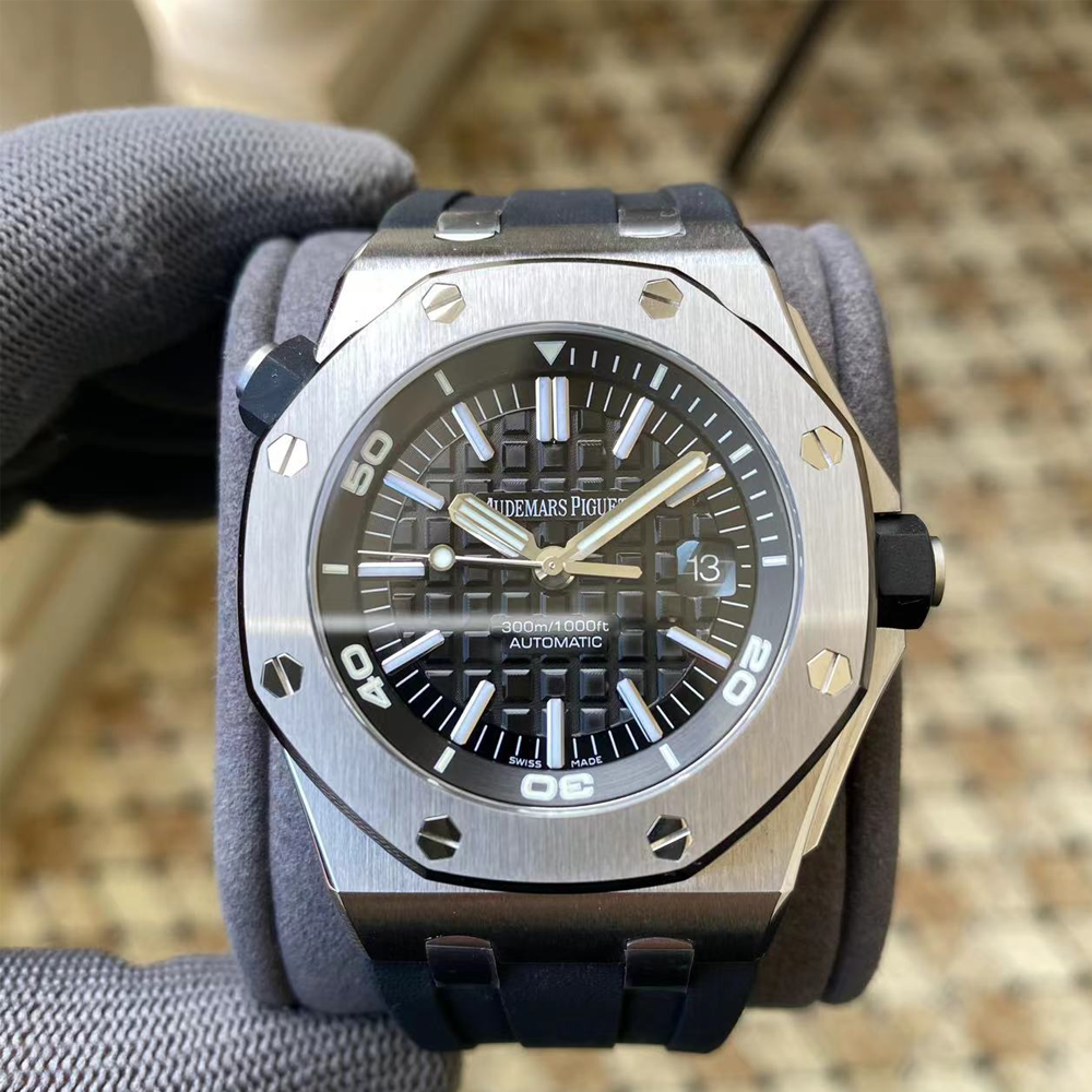 로얄 오크 오프쇼어 다이버 15703 APSF 1:1 베스트 에디션 블랙 다이얼, 블랙 러버 스트랩 V2 A3120 슈퍼 클론
