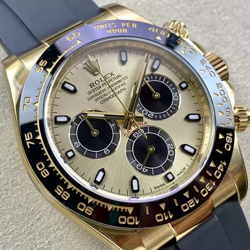 롤렉스 데이토나 크로노그래프 골드 다이얼 바인덱스 러버밴드 40mm 116515