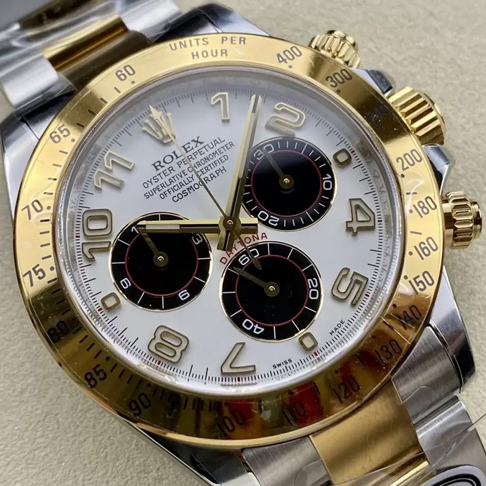롤렉스 데이토나 크로노그래프 팬더 화이트 다이얼 YG 콤비 40mm 116523