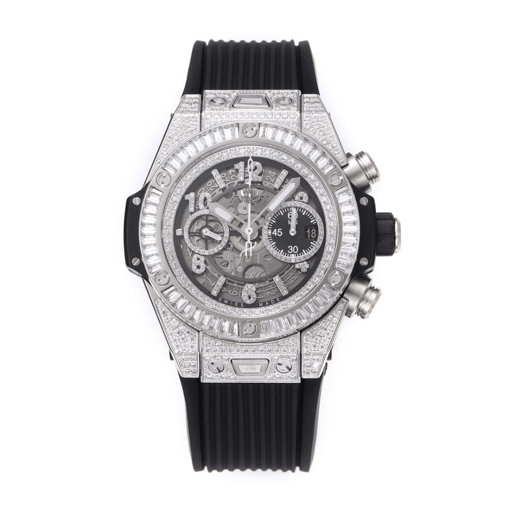 위블로 빅뱅 유니코 바게트 풀다이아 티타늄 러버 스트랩 44mm 421.NX.1170.RX.0904