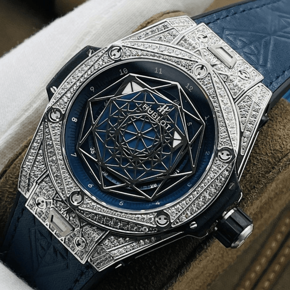 위블로 HB 빅뱅 상 블루 시리즈 415.NX.1112.VR.MXM16 타투 워치가 출시되었습니다! 조화로운 패턴과 균형 잡힌 비율이 조화를 이루며 공존하며, 시간이라는 차원 속 기하학적 형태의 무한한 신비를 완벽하게 표현합니다!