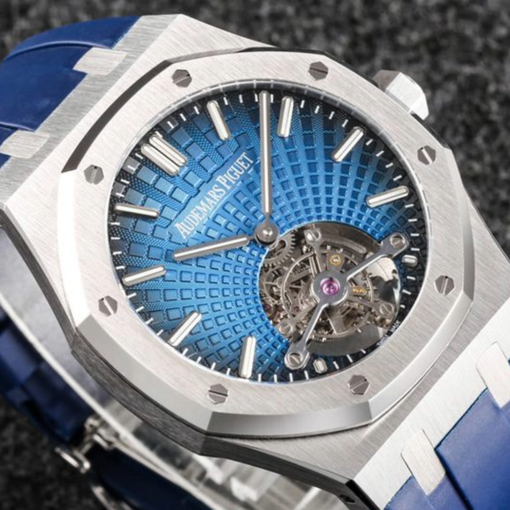 오데마피게 로얄오크 투르비옹 블루 다이얼 스틸 블루 러버스트랩 V3 41mm 26522TI