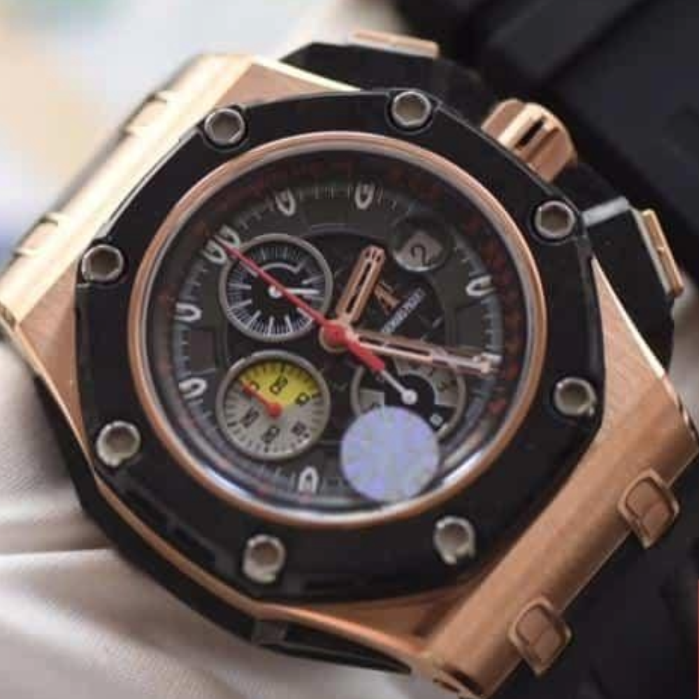 오데마피게 로얄오크 오프쇼어 그랑프리 한정판 블랙 카본 로즈골드 블랙 가죽 스트랩 V2 44mm 26290RO