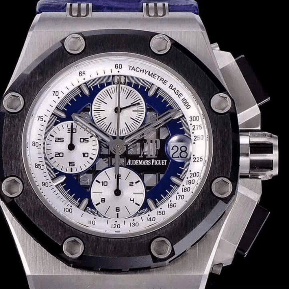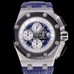 오데마피게 로얄오크 오프쇼어 블루/화이트 다이얼 스틸 블루 가죽스트랩 42mm 26078PO