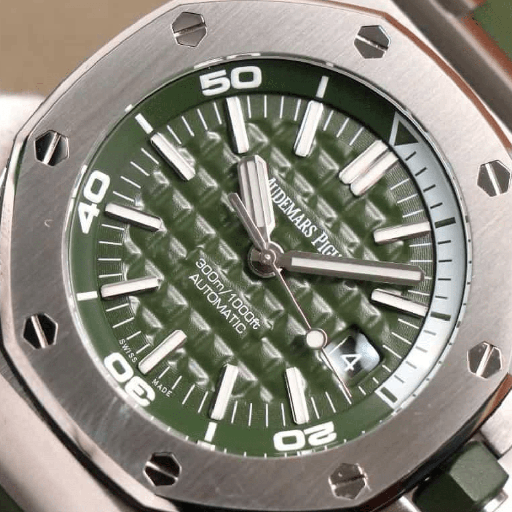 오데마피게 로얄오크 오프쇼어 밀리터리 그린 다이얼 스틸 그린 러버스트랩 42mm 15710ST