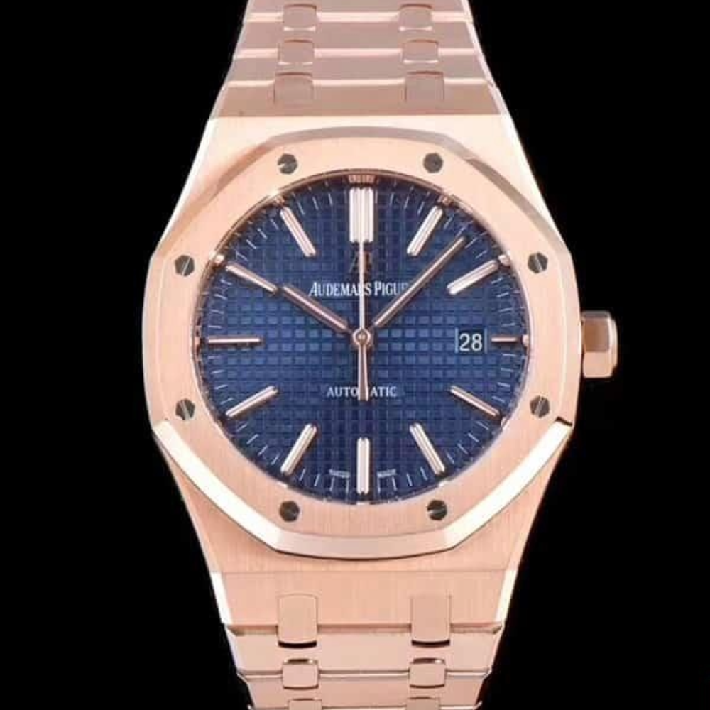 JF 팩토리 AP 오데마 피게 로얄 오크 시리즈 15400OR.OO.1220OR.03 시계 로즈 골드 스틸 케이스 블루 플레이트