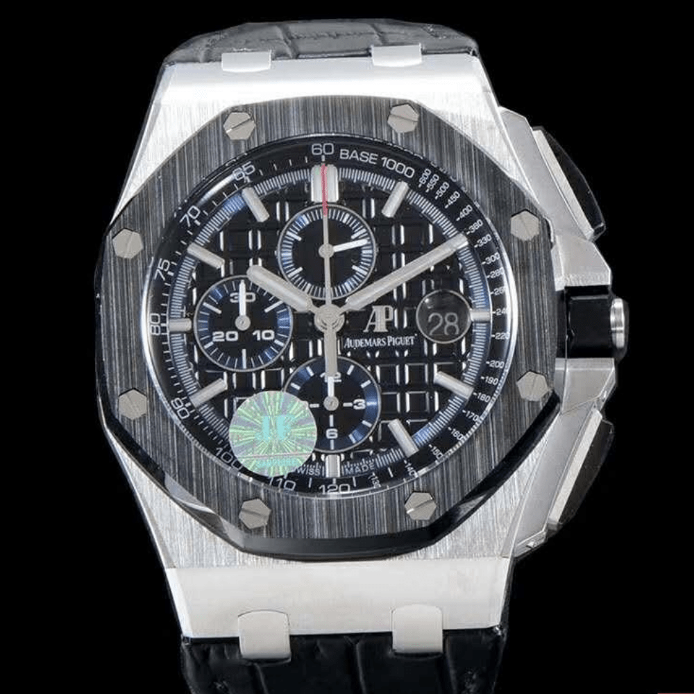 최강 에디션 "26411PO" 시리즈 [JF Fine A P26411PO 스틸 케이스, 블랙 세라믹 베젤 시리즈, 직경 44mm, 커스텀 에디션 12시간 크로노그래프 3.126 무브먼트 장착, 최고급 러버 스트랩]