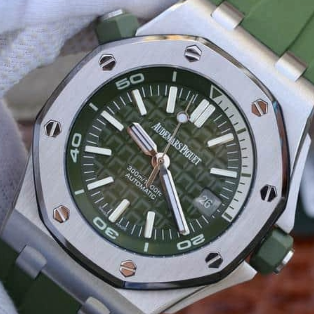 오데마피게 로얄오크 오프쇼어 다이버 그린 다이얼 러버 스트랩 슈퍼클론 V8 42mm 15710ST