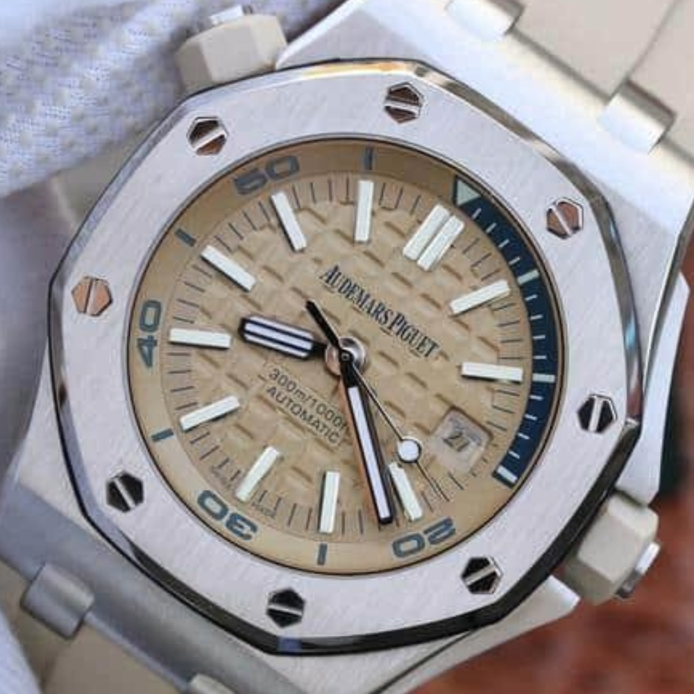 오데마피게 로얄오크 오프쇼어 다이버 베이지 다이얼 러버 스트랩 슈퍼클론 V8 42mm 15710ST