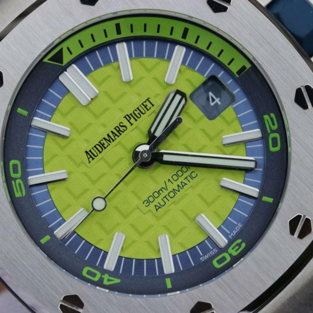 오데마피게 로얄오크 오프쇼어 다이버 형광그린 다이얼 러버 스트랩 42mm 15710ST