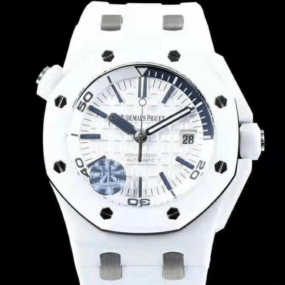 오데마피게 로얄오크 오프쇼어 다이버 화이트 다이얼 러버 스트랩 42mm 15707
