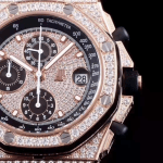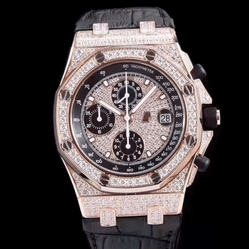 오데마피게 로얄오크 로즈골드 풀다이아 블랙 가죽 스트랩 42mm 26067