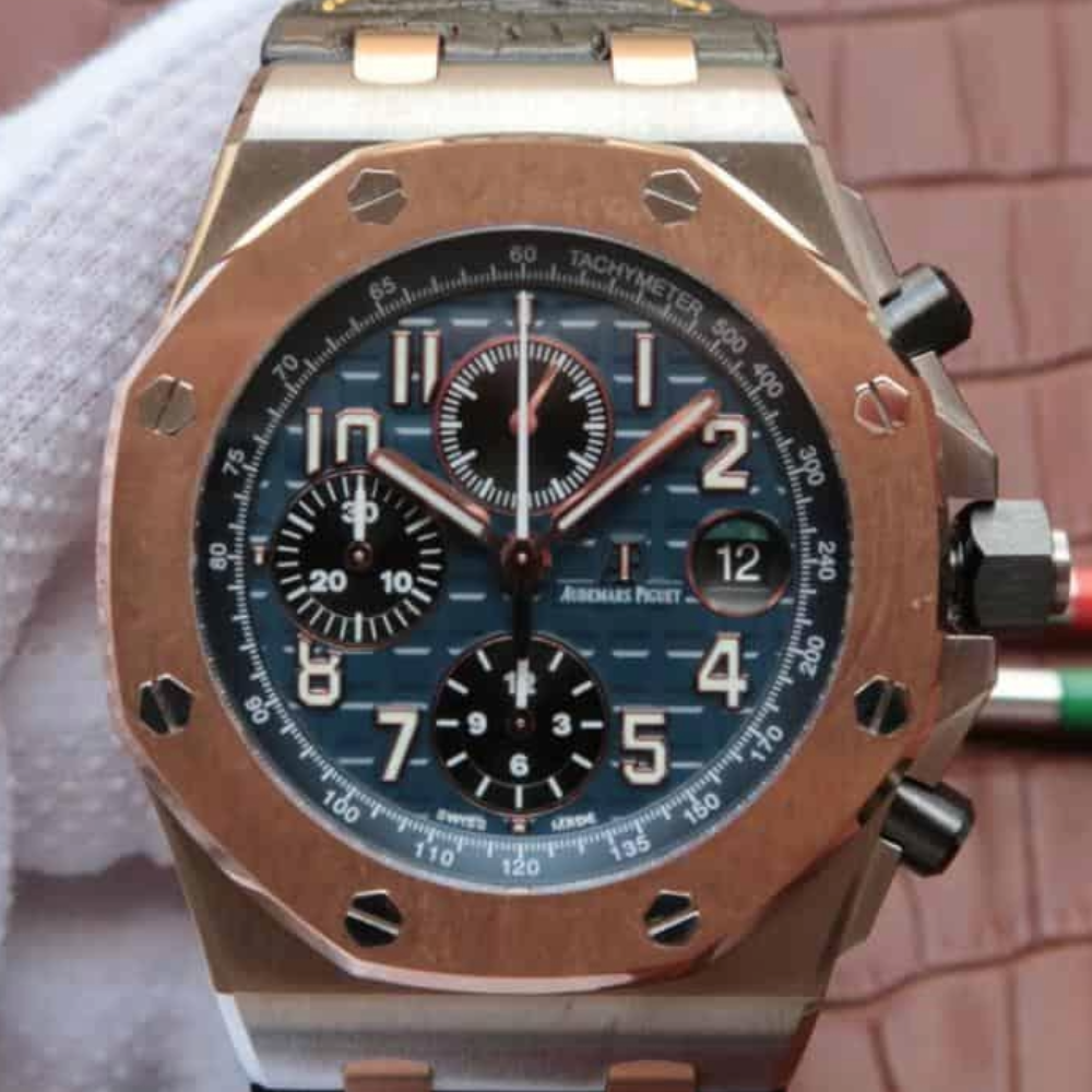 오데마피게 로얄오크 오프쇼어 블루 다이얼 로즈골드 블랙 가죽스트랩 42mm 26471SR