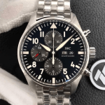IWC 파일럿 파이터 크로노그래프 스틸 블랙 다이얼 SS 브레이슬릿 43mm IW377710