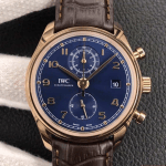 IWC 포르투기저 크로노그래프 클래식 로즈골드 블루다이얼 레더 스트랩 42mm IW390301