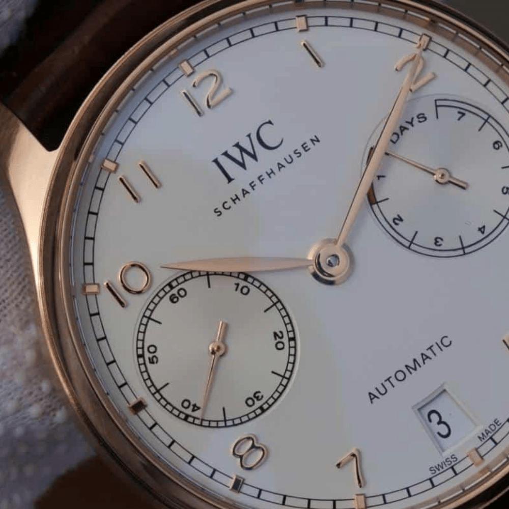 IWC 포르투기저 세븐데이즈 로즈골드 화이트 다이얼 레더 스트랩 42.3mm IW500701