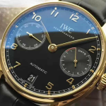 IWC 포르투기저 세븐데이즈 골드 블랙 다이얼 레더 스트랩 42.3mm IW500101
