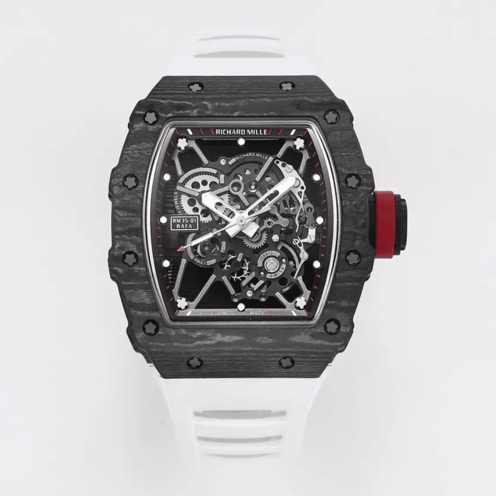 리차드밀 라파엘 나달 블랙 카본 스켈레톤 다이얼 화이트 러버 스트랩 RM35-01