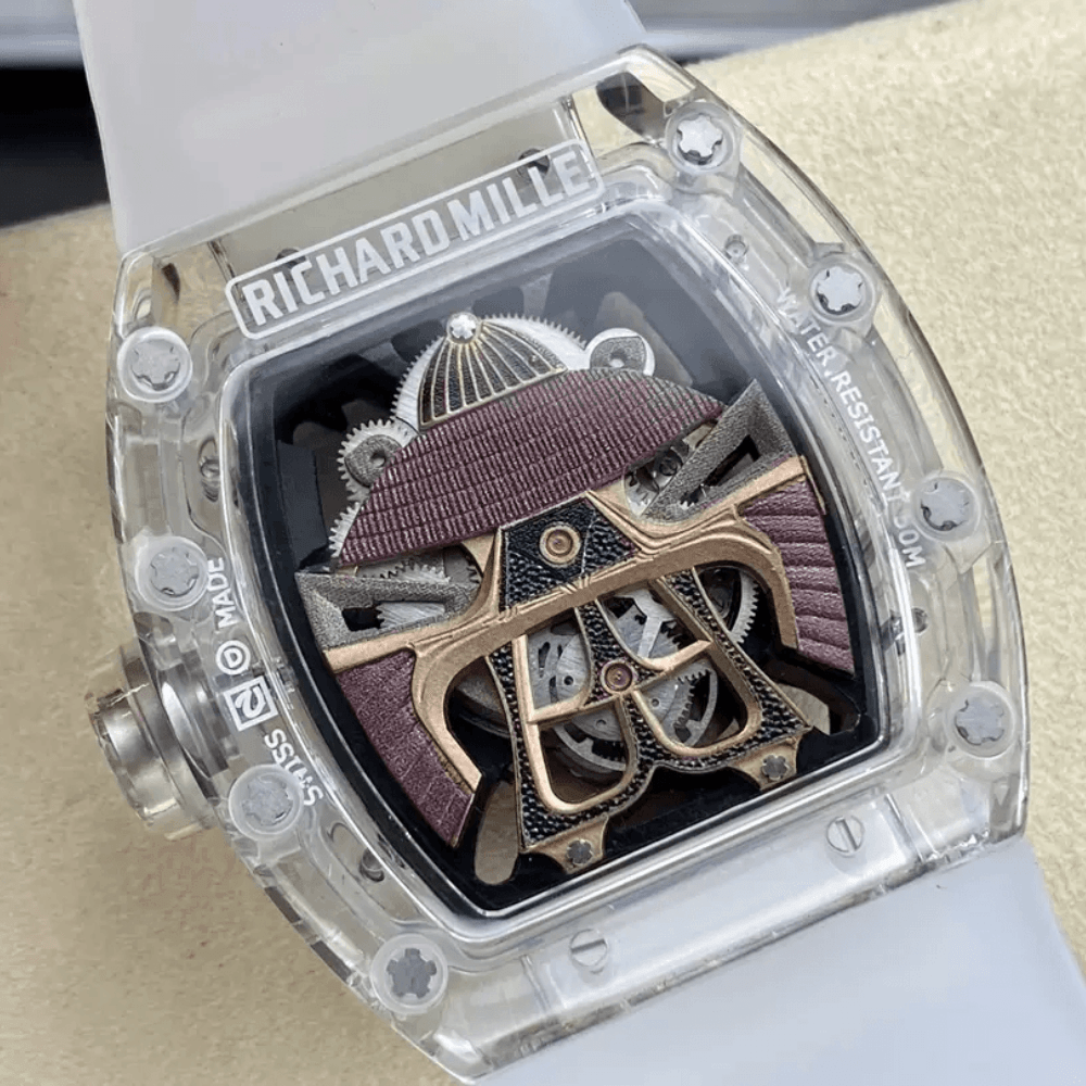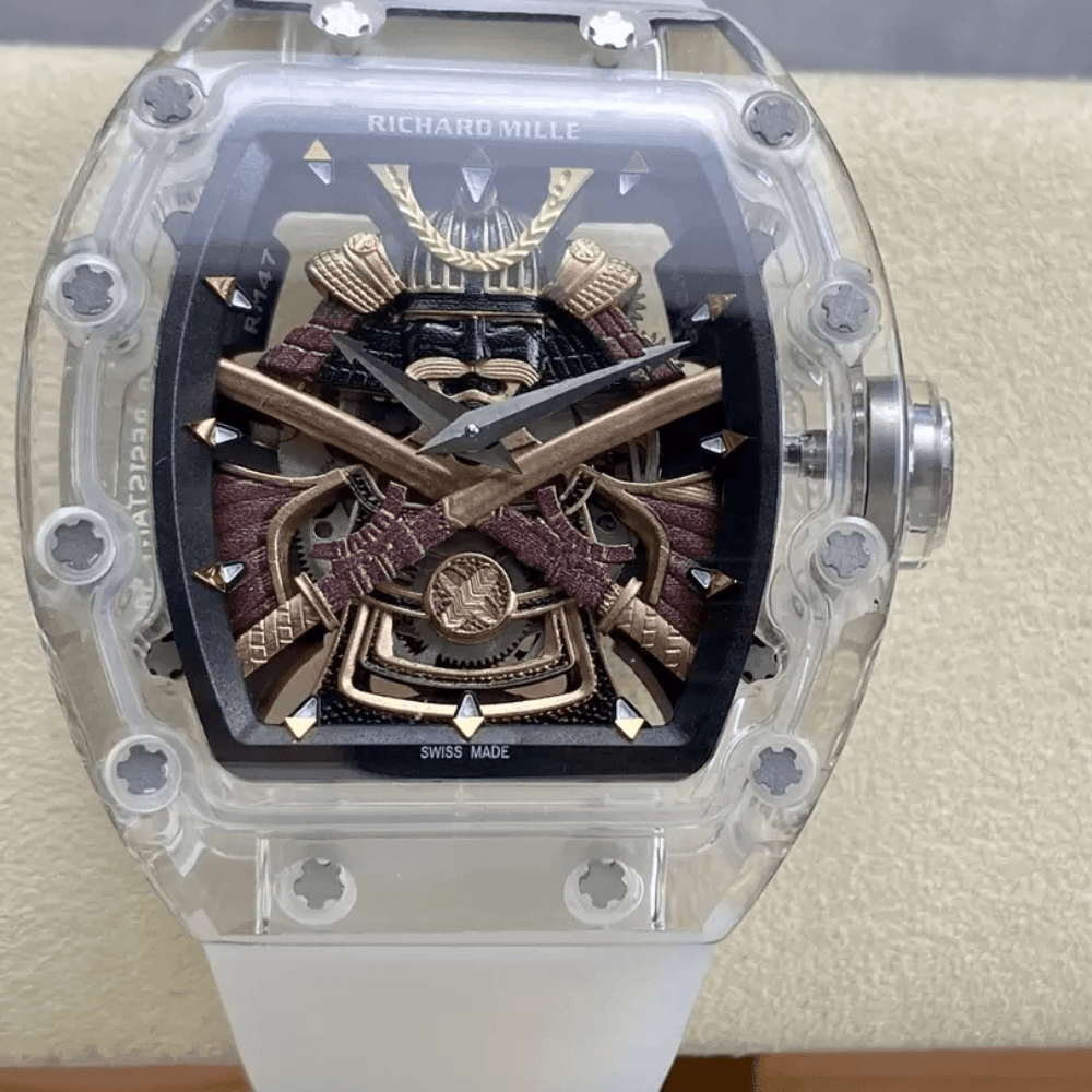 리차드밀 스켈레톤 사무라이 다이얼 사파이어 크리스탈 케이스 화이트 러버 스트랩 RM47