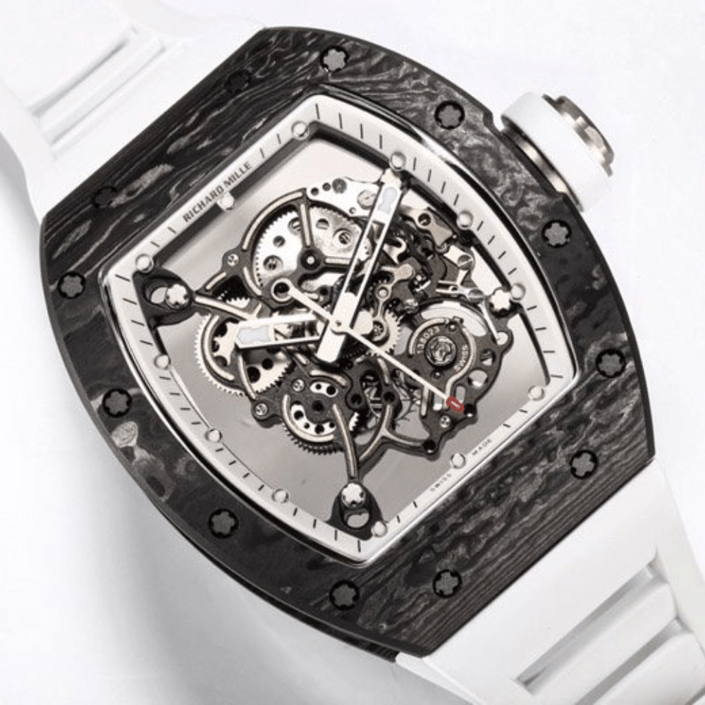 RICHARD MILLERM RM055 RM-055 BBRF 1:1 베스트 에디션 블랙 NTPT 카본 파이버 화이트 러버 스트랩 RMUL2 V4