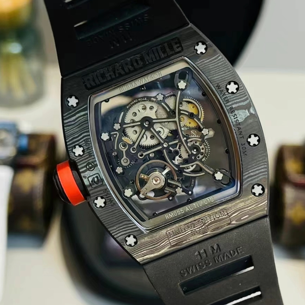파이어 릴리스 올인원 "리차드밀" 릴샤 미르미르는 인기 있는 RMul 2 무브먼트 RM055를 탑재한 최신 NTPT 카본 파이버 소재로 출시되었습니다. RM055는 RM 브랜드 판매 시장에서 꾸준히 호평을 받아온 모델입니다. 수많은 유명 인사들이 애용하는 이 모델은 리인그레이빙 업계의 끊임없는 발전과 디테일의 차별화를 통해 최고의 애호가들을 사로잡았습니다.