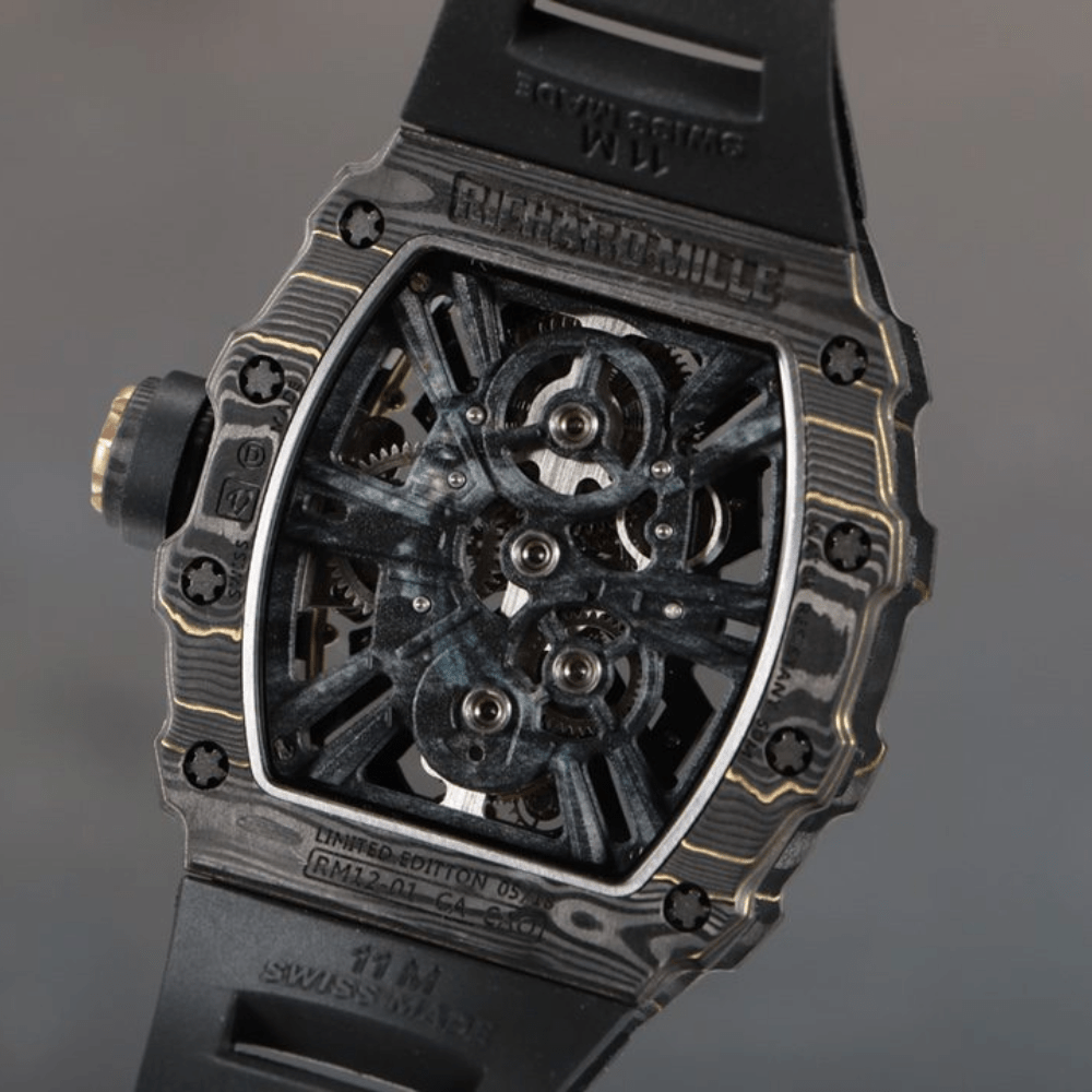 리차드 밀(Richard Mille)의 RM12-01 NTPT 투르비용 익셉셔널 스포츠 스켈레톤 유선형 시계는 전설적인 RM012 무브먼트를 재해석하여 소재 혁신과 워치메이킹 아키텍처를 결합했습니다. RM12-01 투르비용 시계는 RM12-01 투르비용을 탑재했으며, 미국 매장에서만 독점적으로 여러 한정판을 판매합니다.