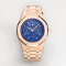 고귀한 시계 오데마 피게 로얄 오크 시리즈 퍼페추얼 캘린더 시계는 고귀하고 우아한 블루 다이얼과 시크한 스테인리스 스틸 케이스로, 오데마 피게의 미적 디자인과 복잡한 기능에 대한 첨단 기술을 완벽하게 반영합니다. 직경 11.4mm. 블루 컬러 다이얼에는 "그란데 타피세리"라는 커다란 체크무늬 장식이 새겨져 있으며, 블루 컬러 다이얼, 입체적인 아워 마커, 야광 코팅 처리된 핸즈가 특징입니다. 캘린더 기능을 보여주는 3개의 서브 다이얼과 문 디스플레이 다이얼이 다이얼에 대칭적으로 배치되어 시, 분, 요일, 날짜, 주간 캘린더, 월, 그리고 유일한 달을 순서대로 표시합니다. 사파이어 스톤의 눈부심 방지 처리로 시계 전체가 더욱 투명하고 밝게 빛납니다.