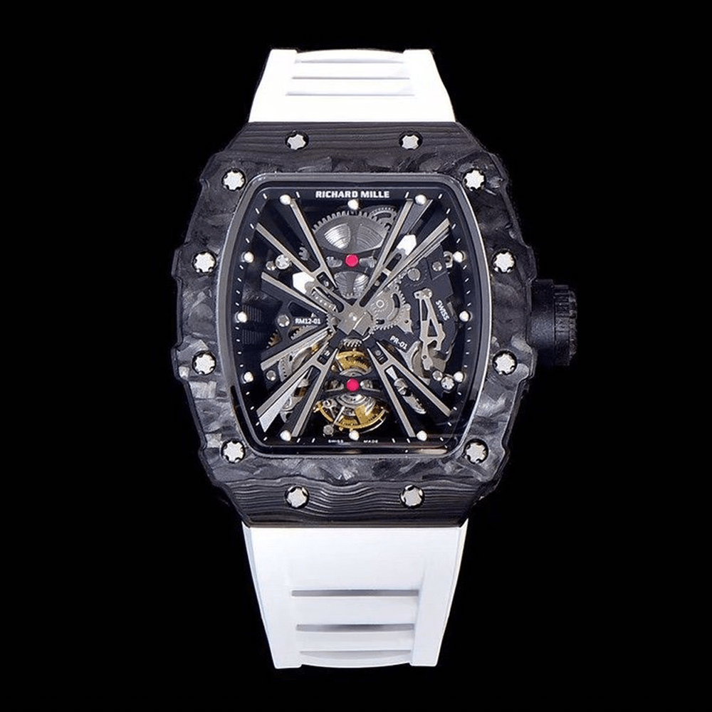 리차드밀 블랙 NTPT 카본 투르비옹 화이트 러버 스트랩 한정판 RM12-01