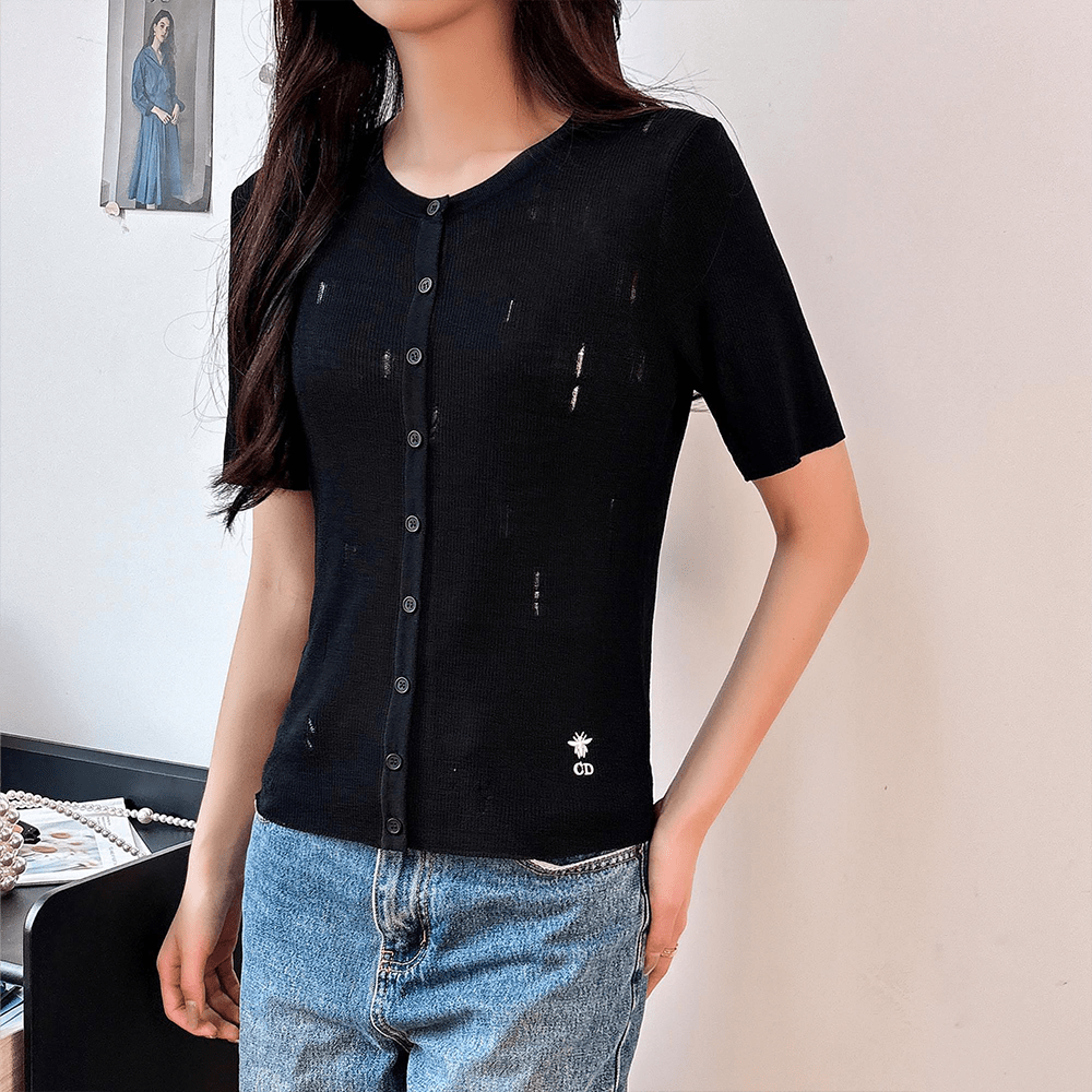 디올 24SS 꿀벌 자수 로고 데미지 가디건 반팔 블랙