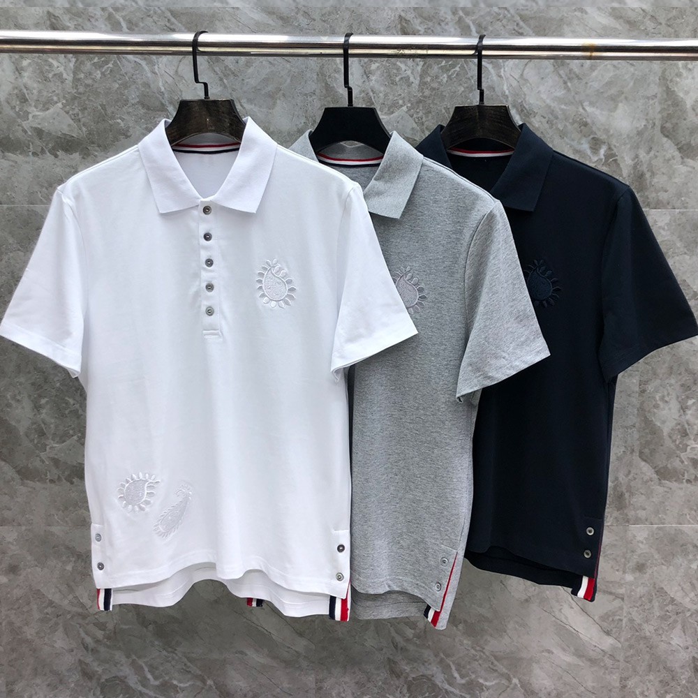 톰브라운 24SS 플라워 자수로고 라펠 폴로 반팔