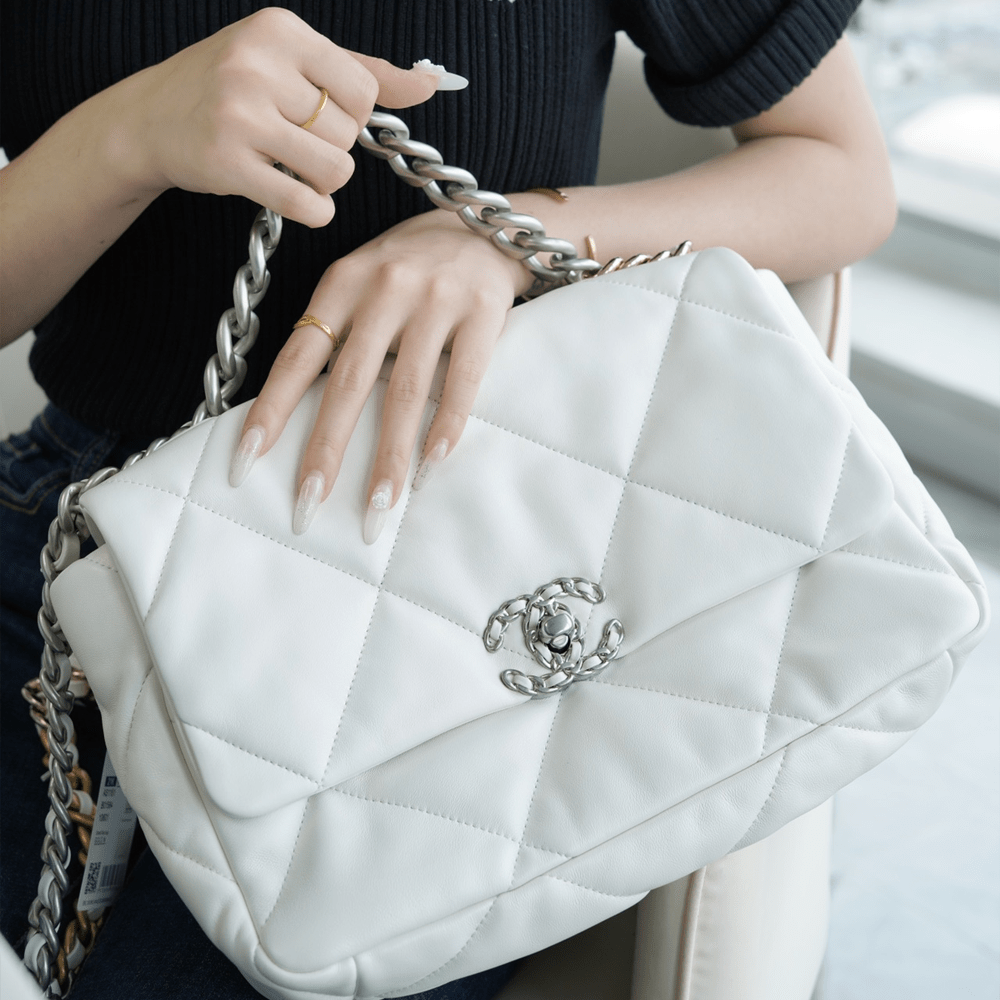 팬더샵 샤넬 19백 미듐 체인 램스킨 화이트