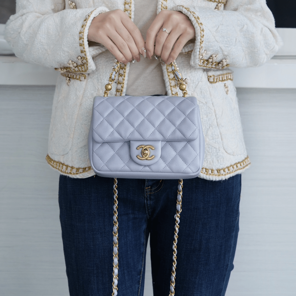 팬더샵 샤넬 클래식 더블 체인 숄더백 라이트 그레이 금장
