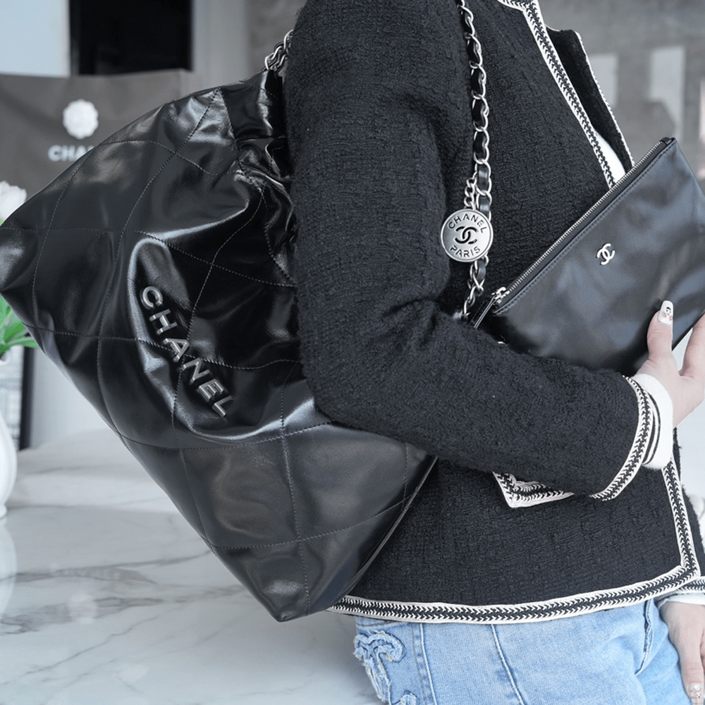 팬더샵 샤넬 22백 가로 버전 블랙 은장