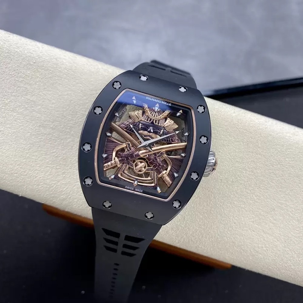 리차드밀 투르비옹 사무라이 블랙 세라믹 스켈레톤 다이얼 블랙 러버 스트랩 RM047