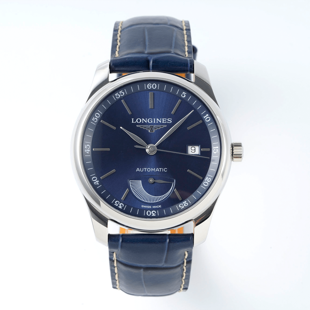 론진 워치메이킹 트래디셔널 마스터 키네틱 빅 마우스 블루 다이얼 레더 스트랩 40mm L2.908.4.92.0