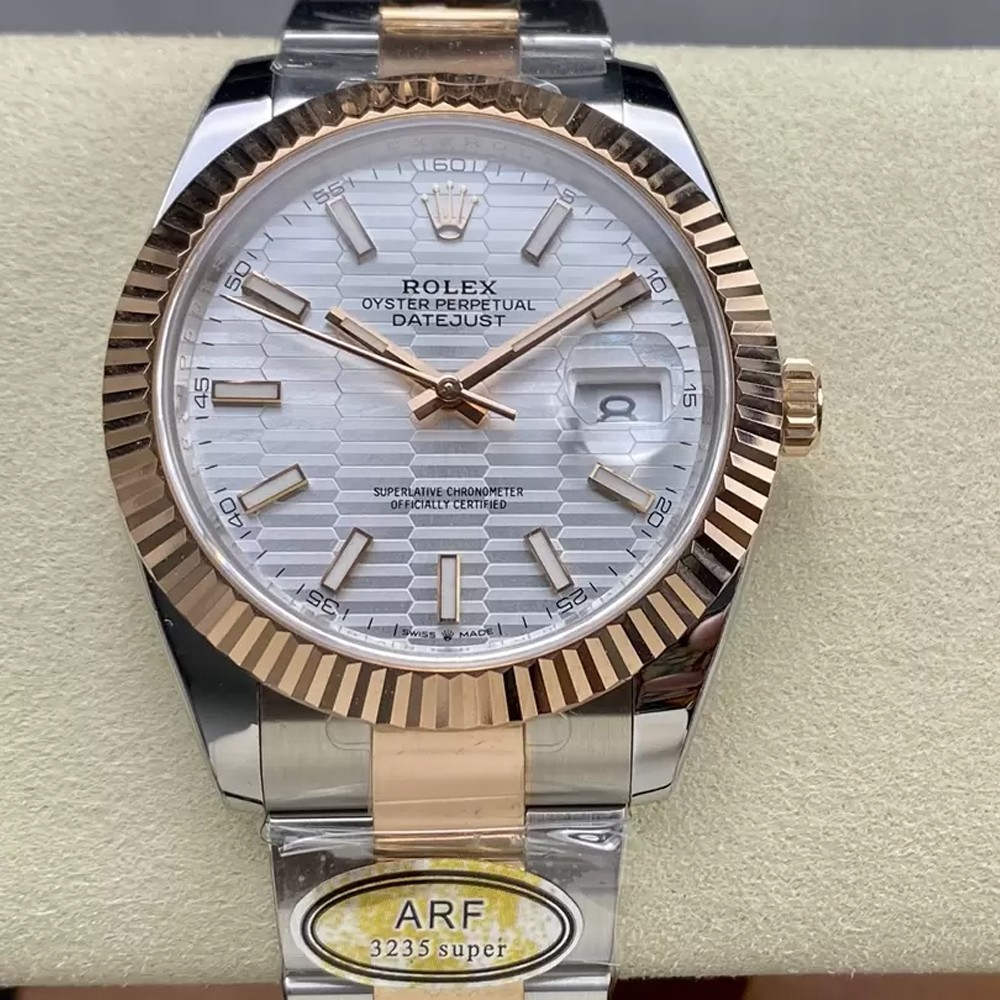 ARF 팩토리 신제품 출시! 41mm 롤렉스 데이트저스트 시리즈에 3235 무브먼트가 통합되었습니다. 2.5배 확대 미네랄 렌즈와 3차원 핸즈가 결합된 고화질 사파이어 크리스털이 특징입니다. 다이얼은 오일 프린트 마커, 정밀한 아크 및 챔퍼 폴리싱, 그리고 초강력 아이스 블루 야광으로 선명하게 표현됩니다.
