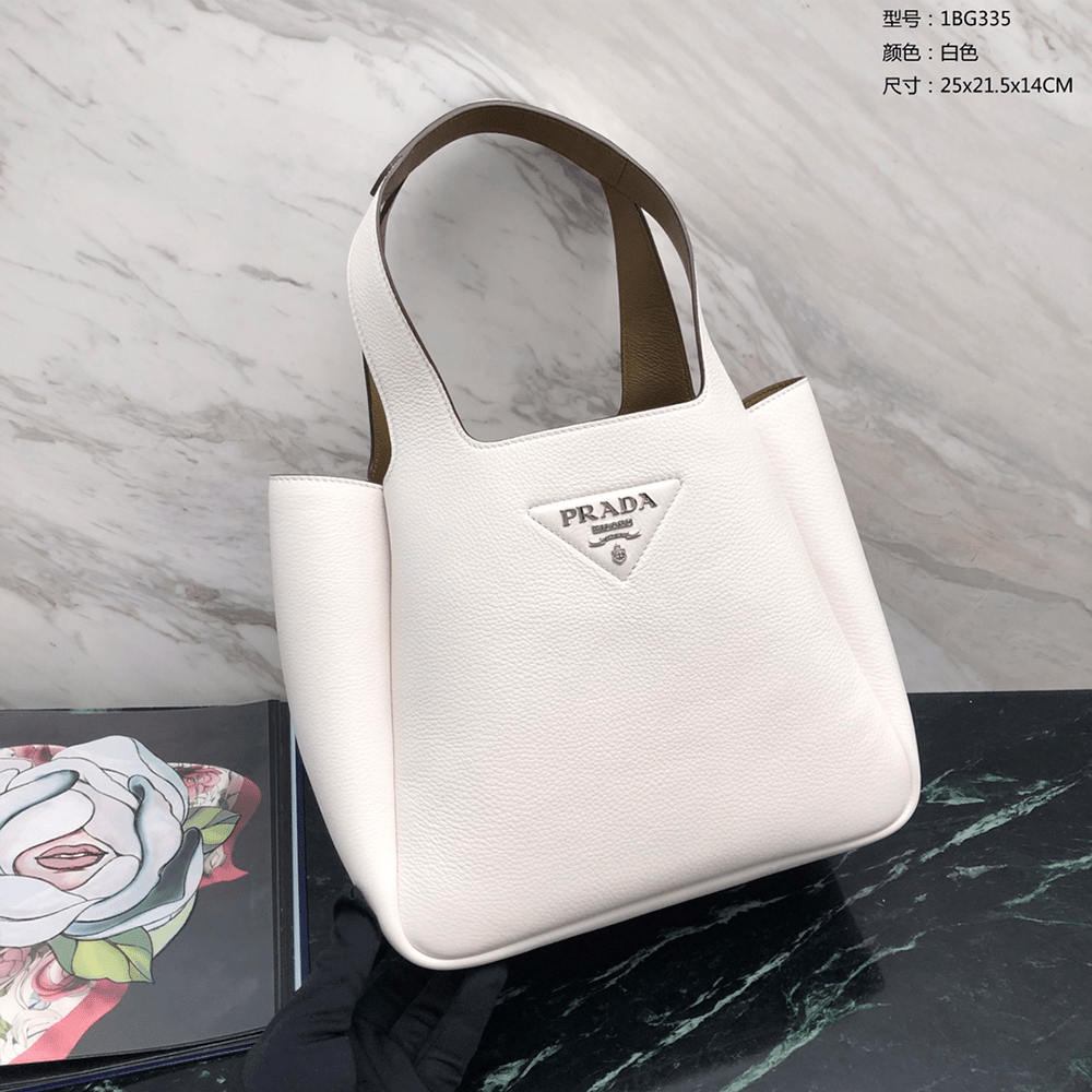 프라다 미디엄 레더 토트 백 화이트 1BG335