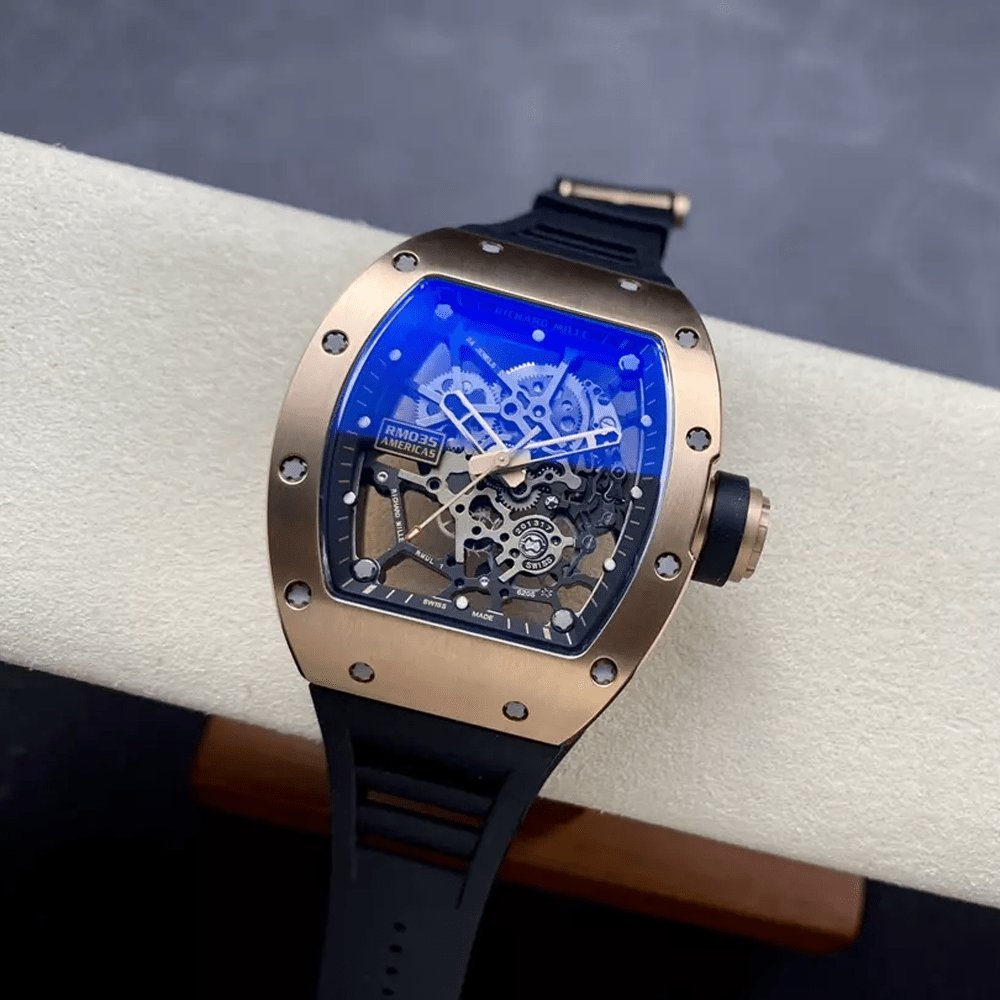 리차드밀 아메리카스 로즈골드 스켈레톤 다이얼 블랙 러버 스트랩 RM035