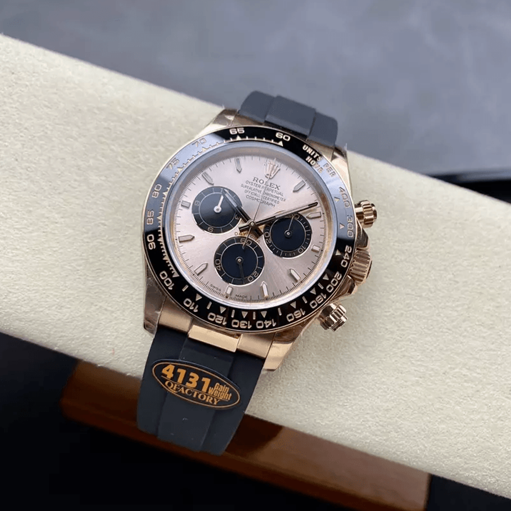 QF공장 롤렉스 크로노그래프 데이토나 로즈골드 다이얼 바인덱스 러버밴드 40mm (텅스텐 헤비버전) 126515