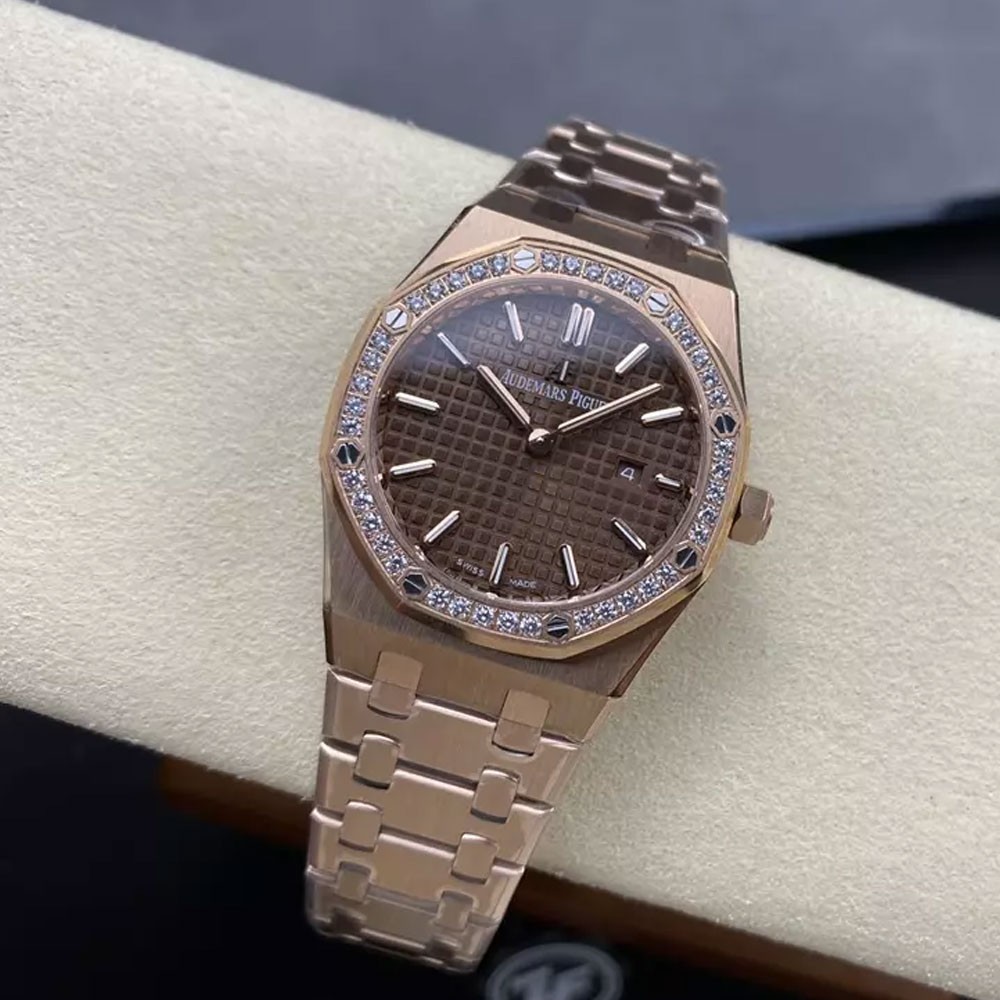 ZF공장 오데마피게 레이디 로얄오크 브라운 다이얼 다이아베젤 로즈골드 금통 33mm 여성용 67651
