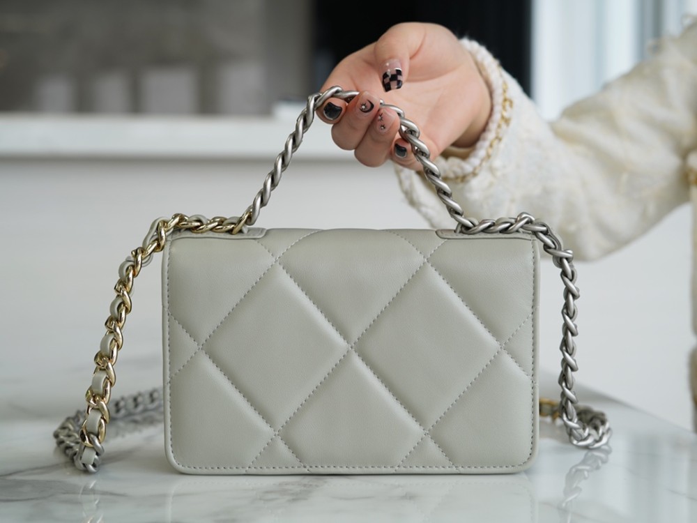 팬더샵 샤넬 19 WOC 턴락 램스킨 라이트그레이 은장