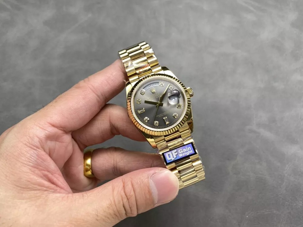 v5 롤렉스 데이데이트 그레이 옴브레 다이얼 10P다이아 옐로우골드 금통 36mm 128238