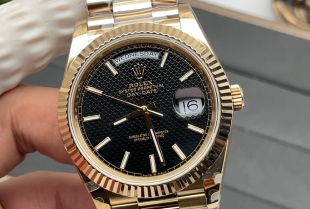 QF공장 롤렉스 데이데이트 블랙 와플 다이얼 바인덱스 YG 금통 40mm V5(텅스텐 헤비 버전) 228238