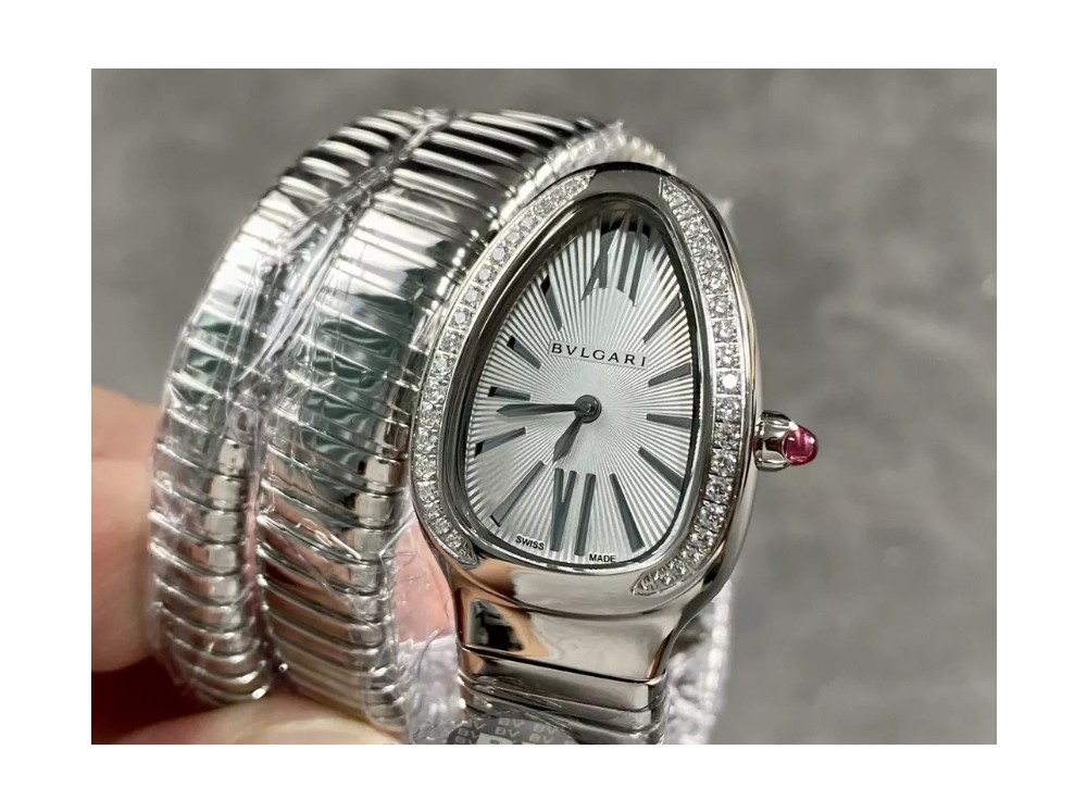 불가리 세르펜티 투보가스 실버 다이아 베젤 화이트 다이얼 35mm 103819