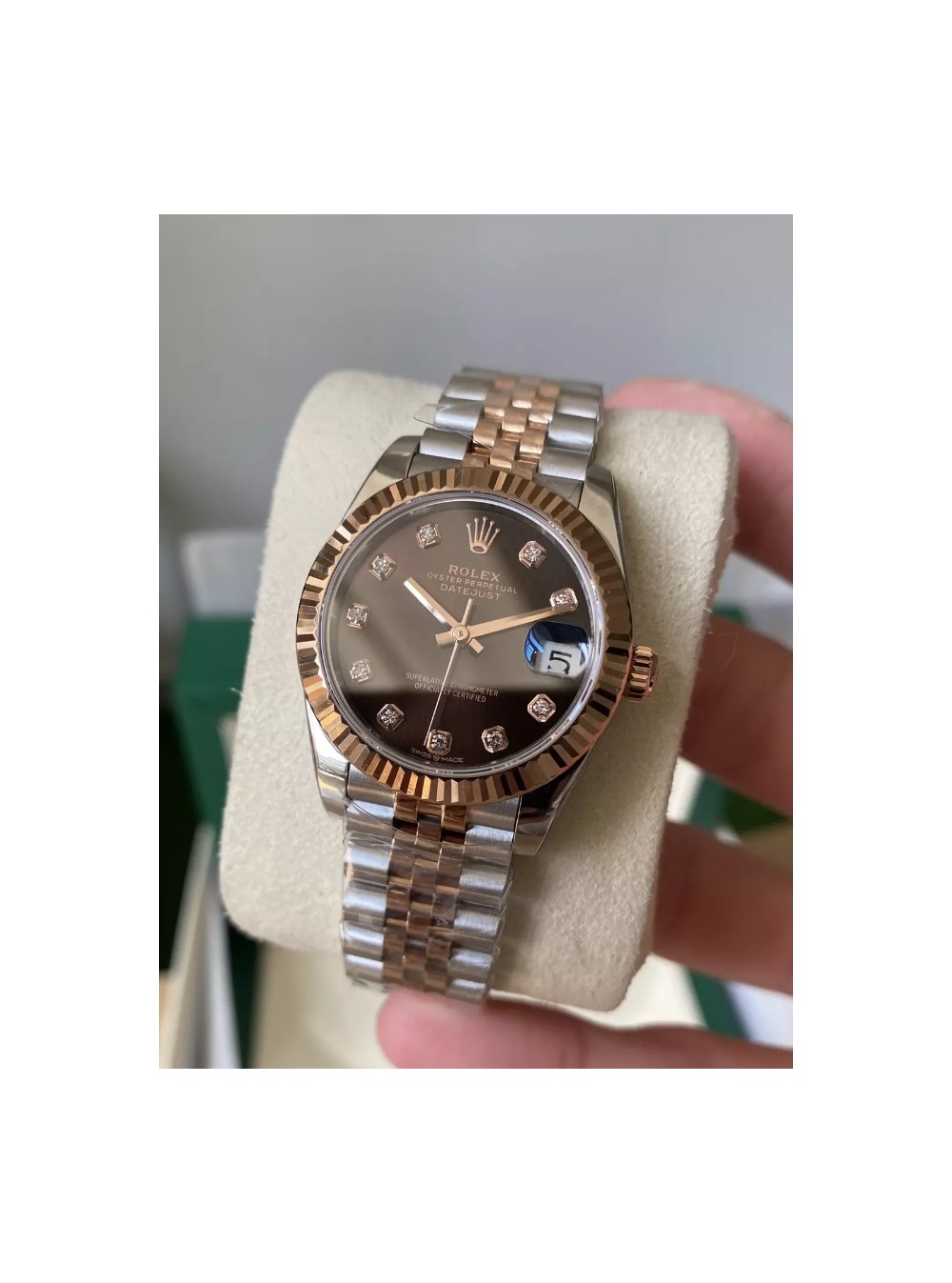 롤렉스 여성용 데이저스트 브라운 다이아몬드 다이얼 콤비 SS/RG 31mm 278271