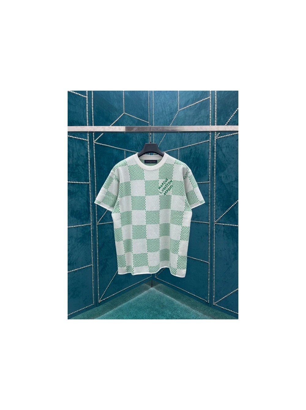 루이비통 화이트 그린 다미에 슬리브 크루넥 니트 반팔
